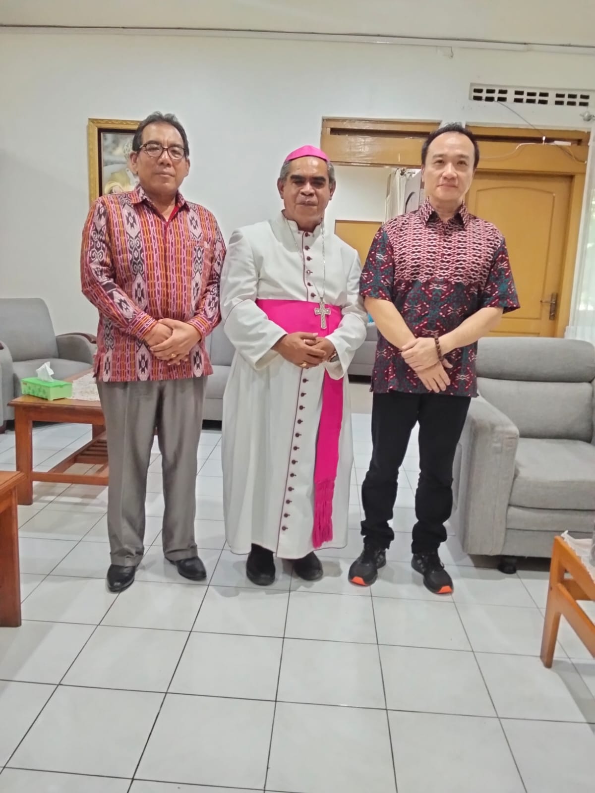 Uskup bersama Ketua Parisada Hindu Dharma Indonesia (PHDI) Provinsi Nusa Tenggara Timur ( Ketua PHDI NTT ), I Wayan Darmawa (kiri).