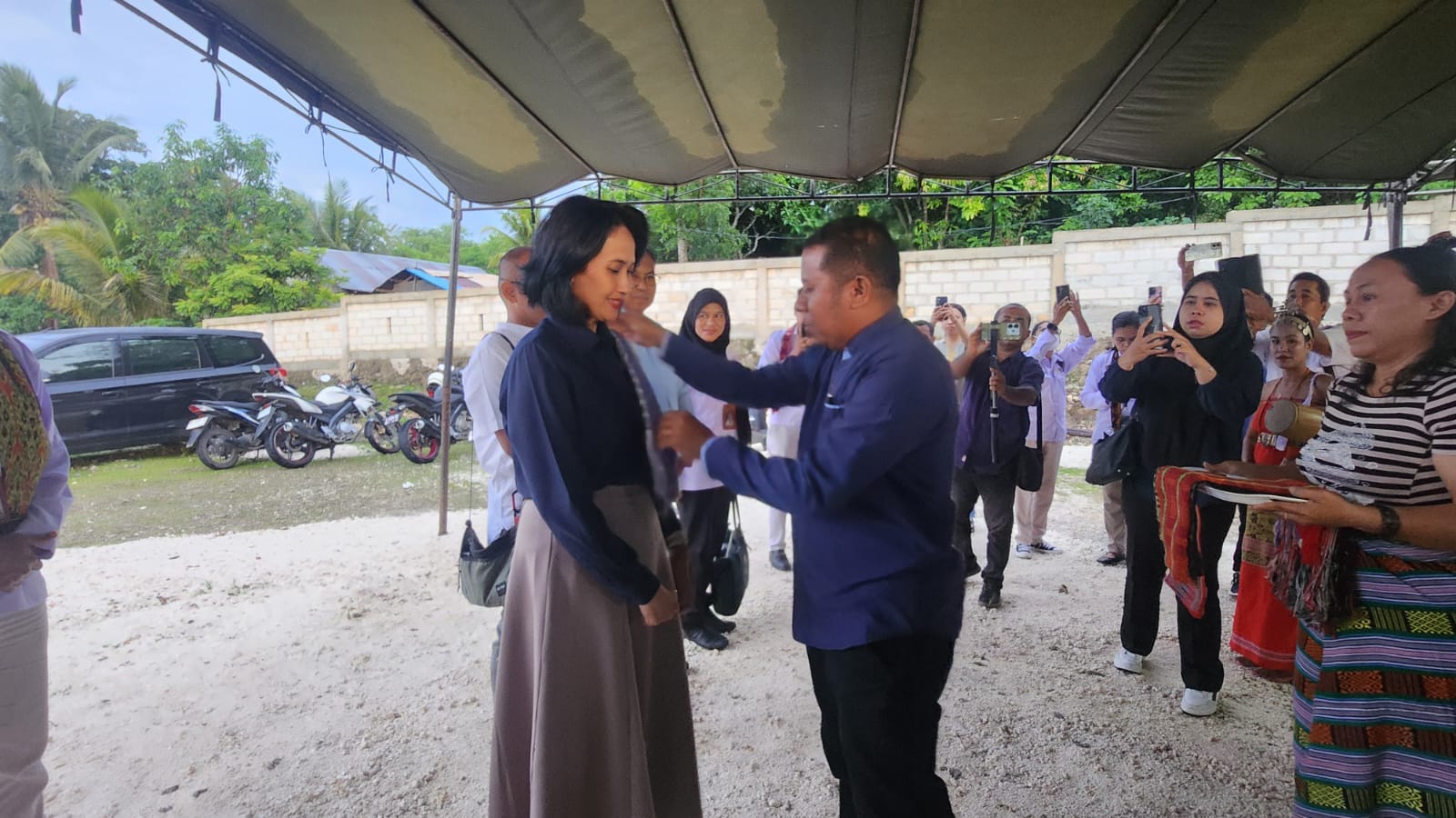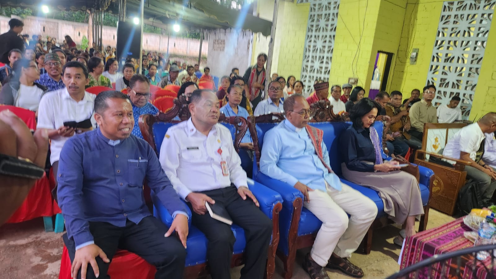 KELANA-NTT.COM, KUPANG — Wakil Menteri (Wamen) Perlindungan Pekerja Migran Indonesia, Christina Aryani, S.E., S.H., M.H., melakukan sosialisasi tentang peluang bekerja di luar negeri di Kapela Santa Maria Fatima Noelsinas, Paroki Santu Fransiskus dari Assisi, Kolhua, Kupang, Rabu, 10 Desember 2025 malam. Wamen disambut dengan pengalungan selendang dan tarian bidu saat memasuki tempat kegiatan.
